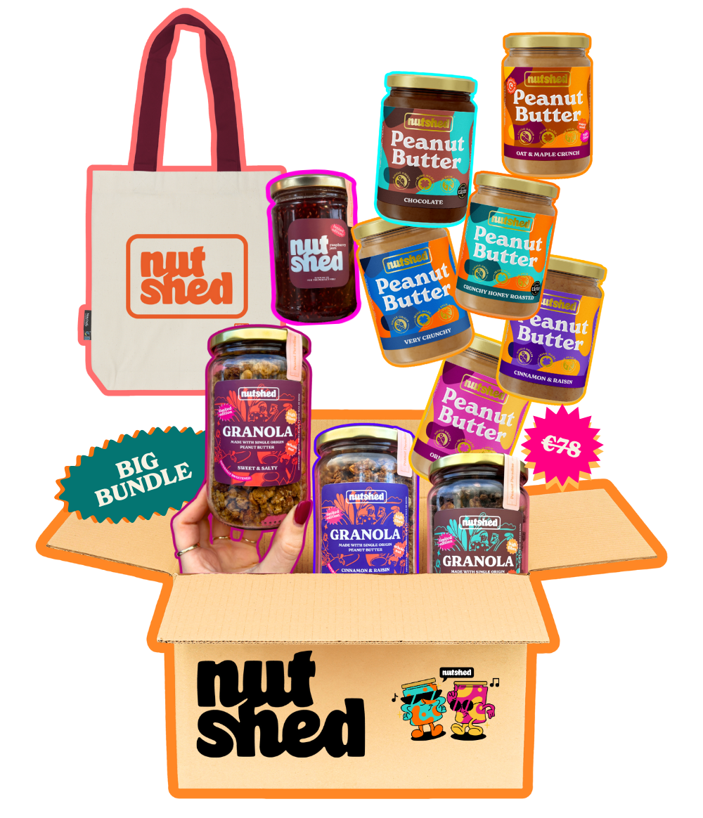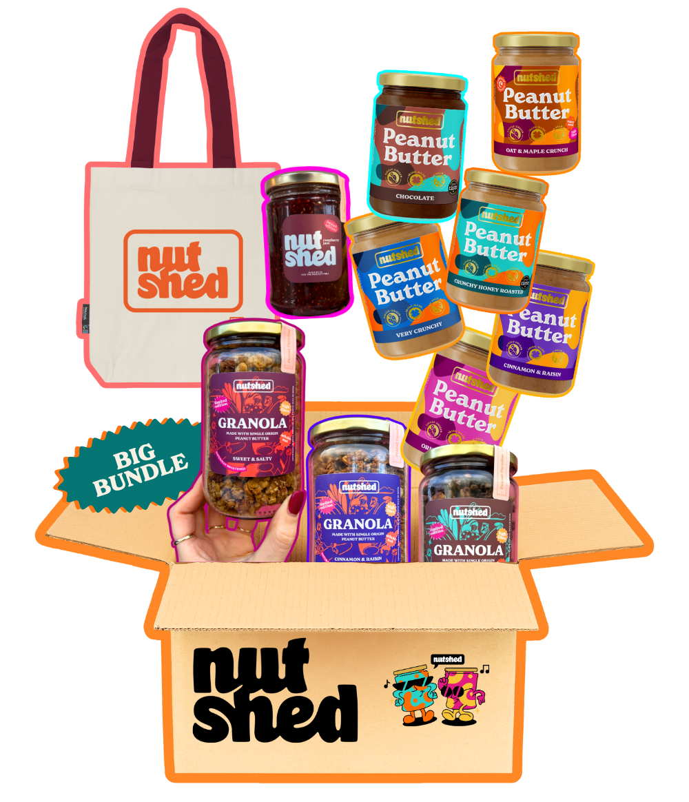 6 x jars of Nutshed peanut butter3 x jars of Nutshed granola1 x pot of Nutshed raspberry jam1 x Nutshed Tote