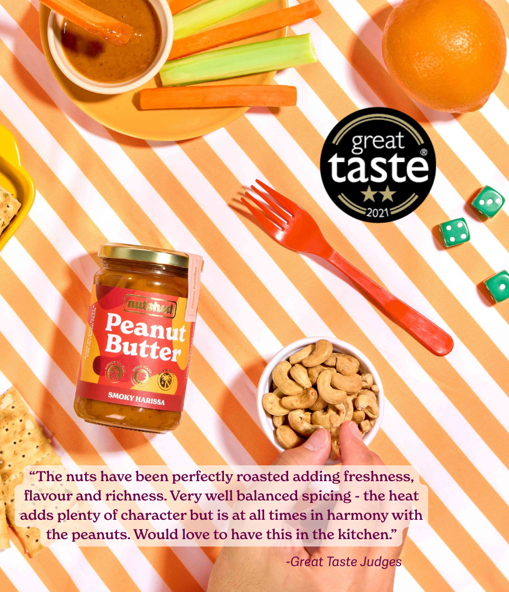 In the early days of Nutshed, we literally served roasted nuts from a shed as beer snacks during Limerick City of Culture. Here we’ve taken these smoky, sweet and salty nuts, added a little heat, and mixed them up with Original Smooth to create a deeply smoky, savoury, full-flavoured peanut butter that packs a little punch.